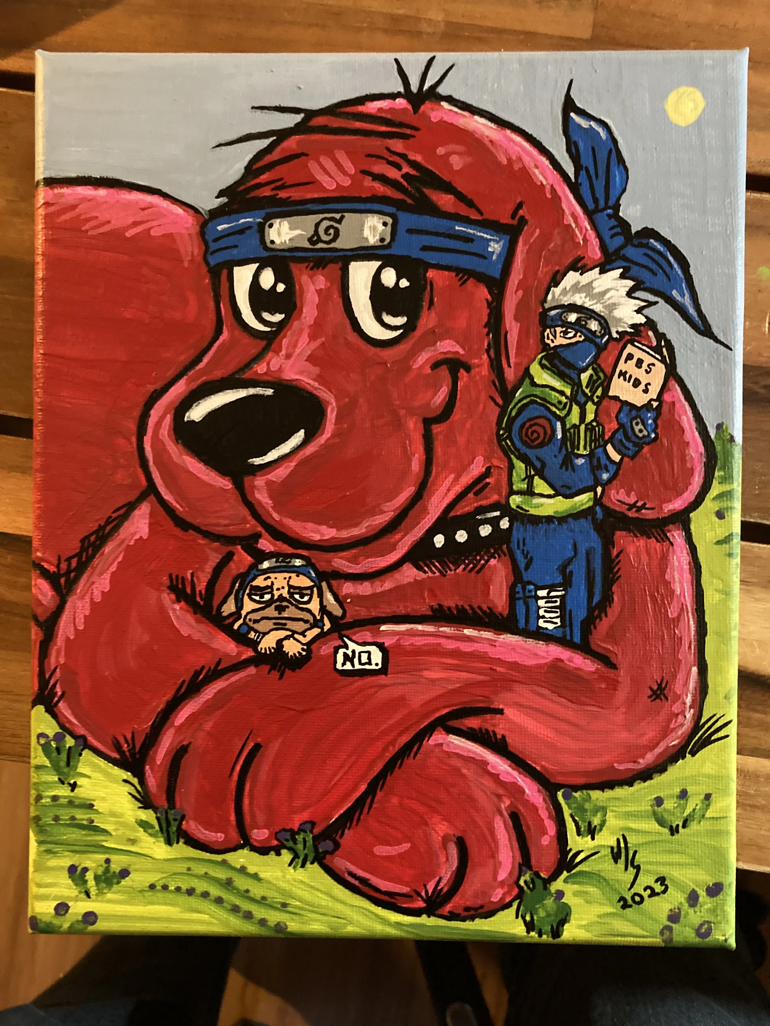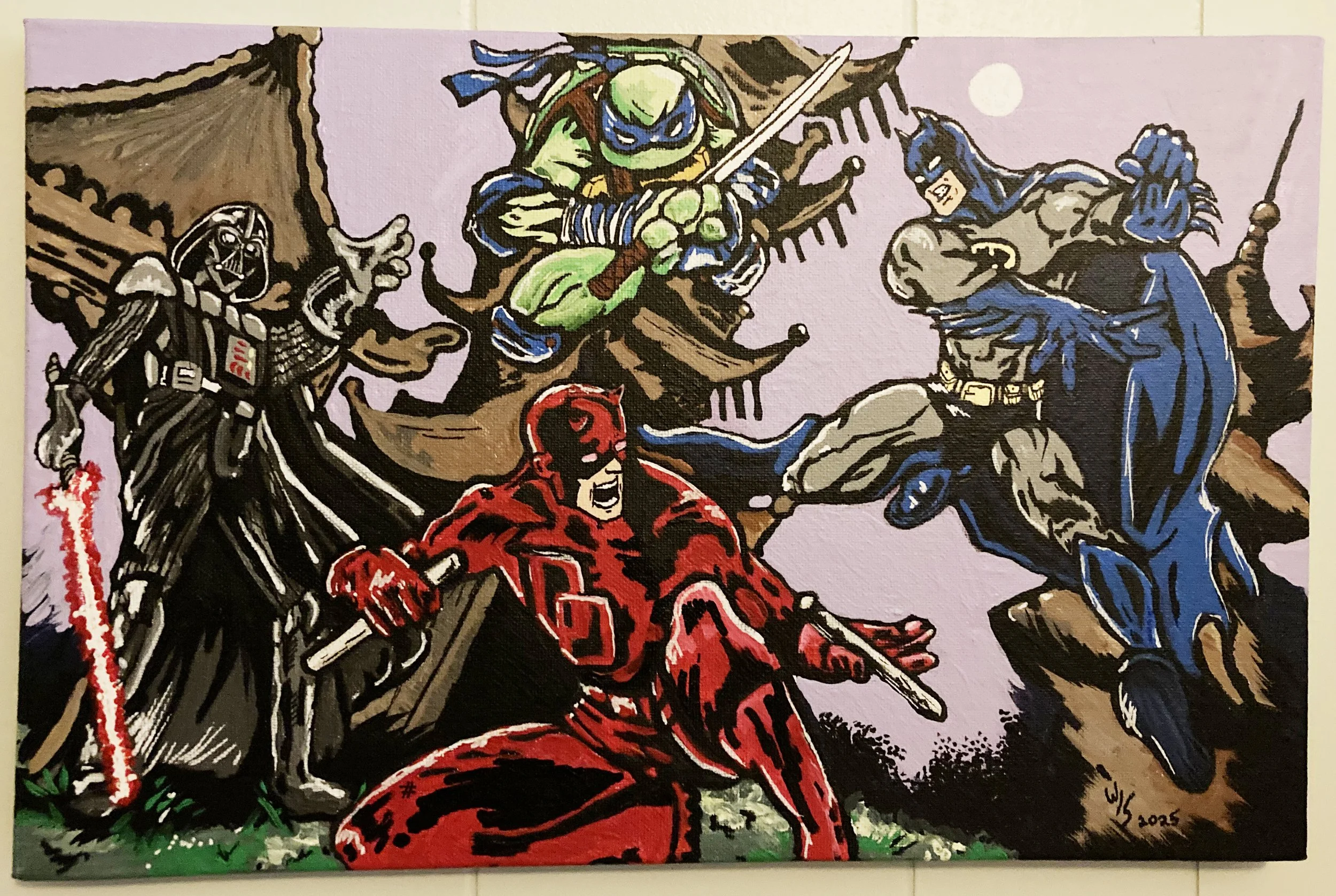 A few years ago I discovered making pictures to be therapeutic. I find inspiration from art I find online (made by real artists), comics, anime, pop culture, Disney, Dungeons & Dragons, coloring books, and photos I just take of things. I work in mixed media (mostly acrylic paint, paint pens, and blending markers) and on mostly small canvases. I enjoy putting unexpected characters and odd themes together, but I also like whales, owls and other critters. If you look around, you’ll notice a picture may work well in more than one category below. In those cases I just picked one. There is nothing serious going on here and nothing is for sale. Just browse and enjoy.